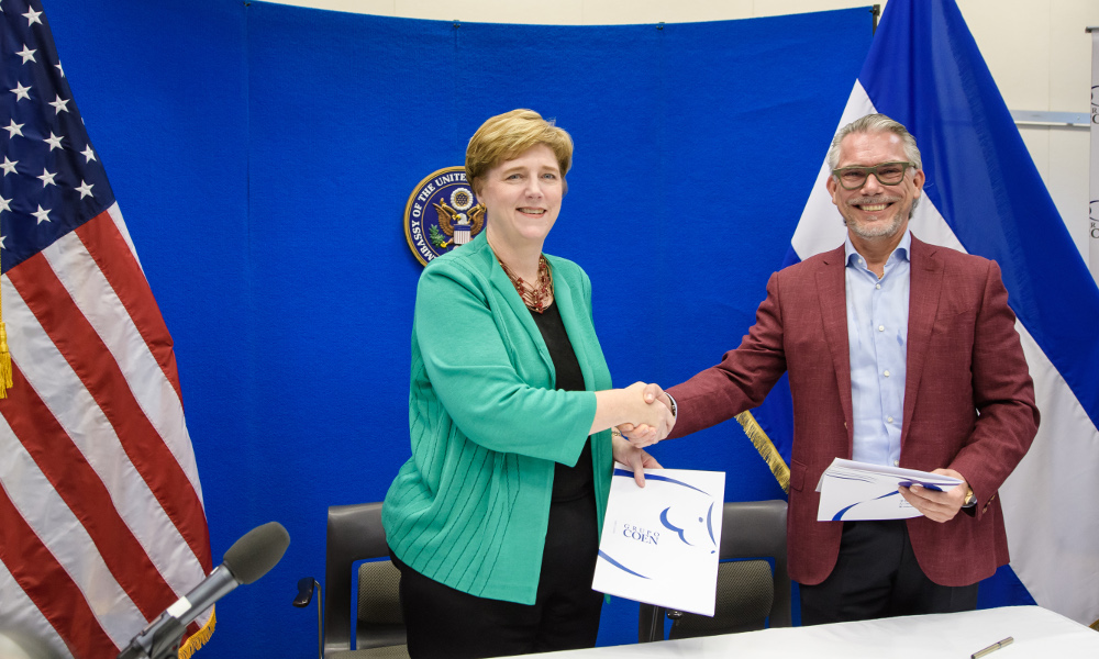 La Embajadora de los Estados Unidos Laura F. Dogu y el Sr. Piero Coen, presidente del Grupo Coen, firmaron un contrato para la construcción de un nuevo complejo residencial para e